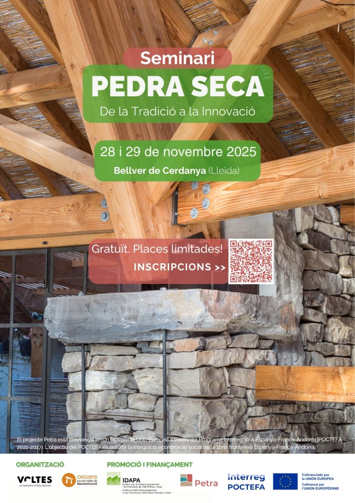 Els pròxims 28 i 29 de novembre de 2025, en el marc de la Setmana de la Pedra Seca, el Centre Cívic Escoles Velles Bellver de Cerdanya (Lleida) acollirà el seminari “Construcció en Pedra Seca: de la tradició a la innovació”, una iniciativa impulsada per l’Institut per al Desenvolupament i la Promoció de l’Alt Pirineu i Aran (IDAPA) en el marc del projecte PETRA, cofinançat pel Programa Interreg VI-A Espanya-França-Andorra (POCTEFA 2021-2027).